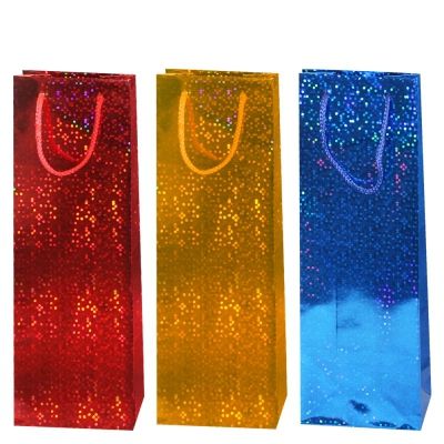 Пакет подарочный бумажный под бутылку 12,3x36,2x7,8см Голография 1/360 оптом и в розницу в Санкт-Петербурге, цены в каталоге с доставкой