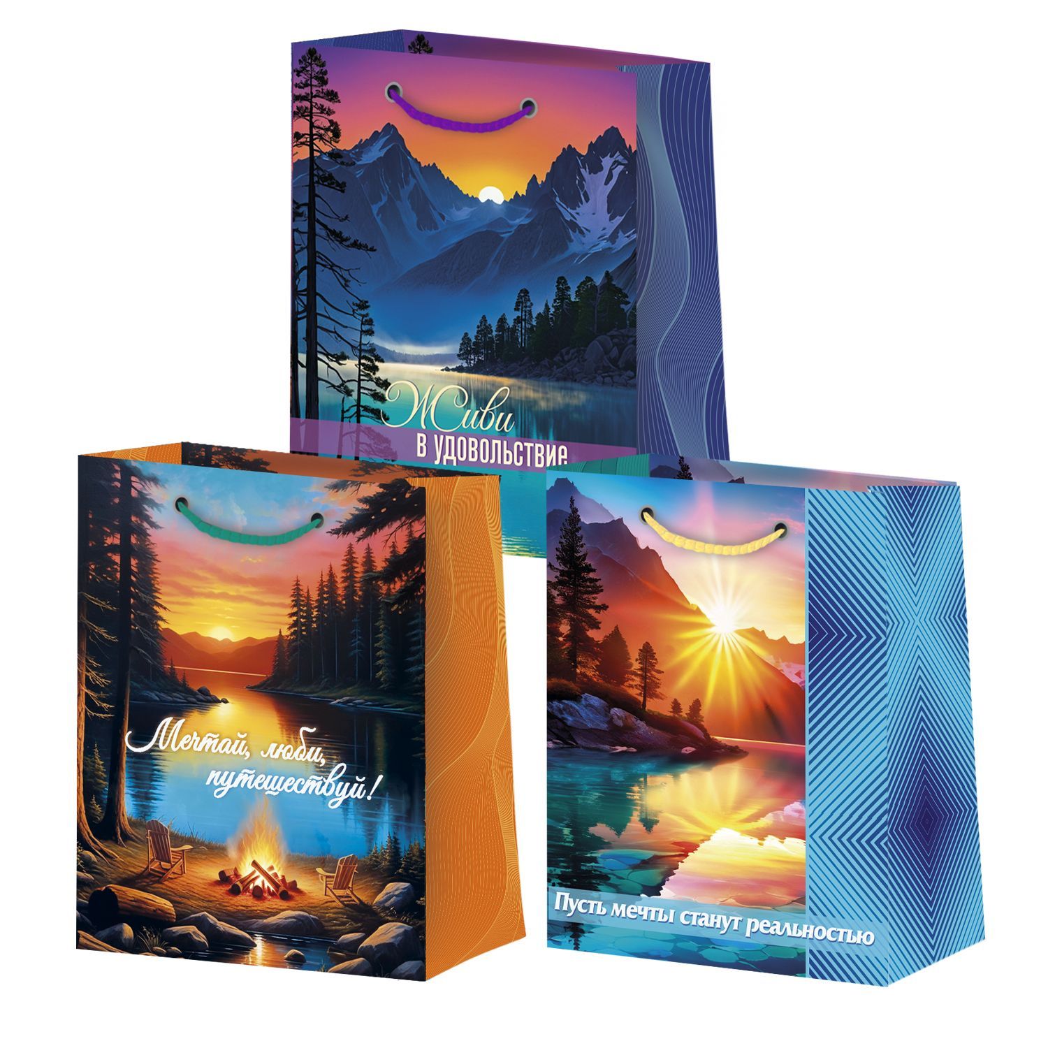 Пакет подарочный бумажный (26,4х32,7x13,6) ламинир мужской микс 1/12/240 оптом и в розницу в Санкт-Петербурге, цены в каталоге с доставкой