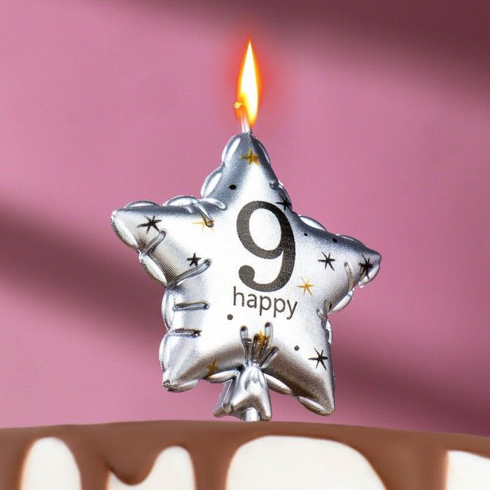 —Свеча для торта Звезда Цифра 9 серебро 1/30/360