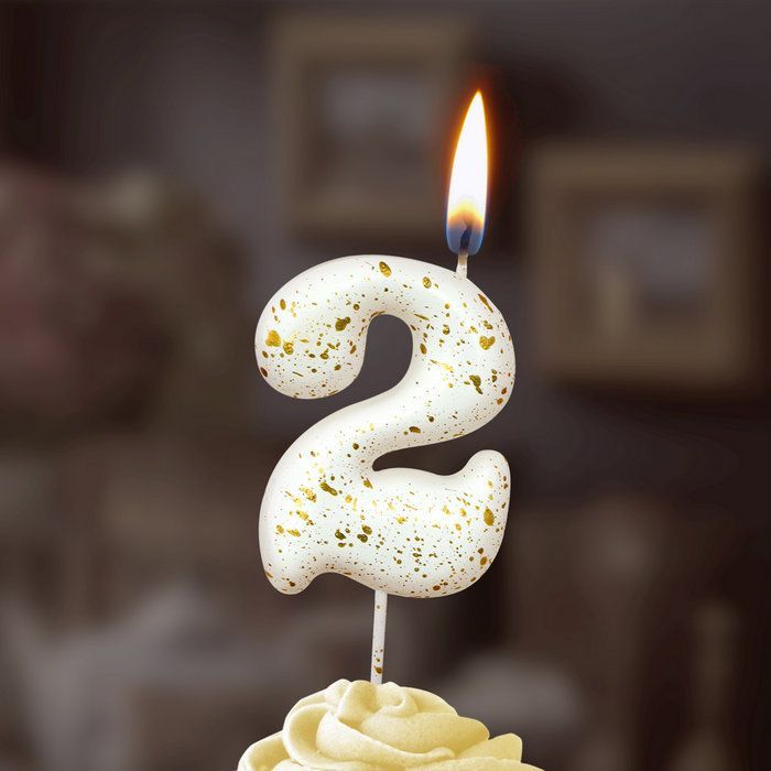 —Свеча для торта Белые брызги Цифра 2 1/30