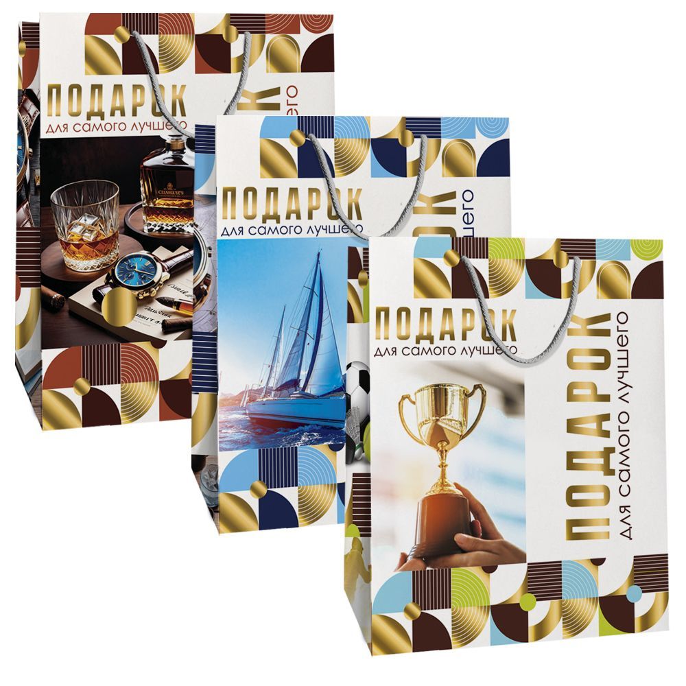 Пакет подарочный бумажный (26,4х32,7x13,6) ламинир мужской микс3 1/12/240 оптом и в розницу в Санкт-Петербурге, цены в каталоге с доставкой