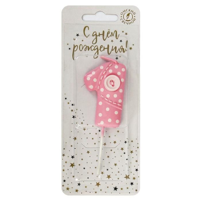 Свеча для торта с пуговкой 1 розовая 1/30 оптом и в розницу в Санкт-Петербурге, цены в каталоге с доставкой