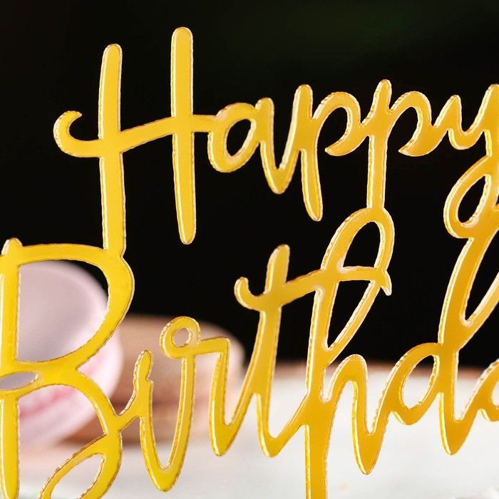 Топпер для торта С днем рождения! золотой 1/1