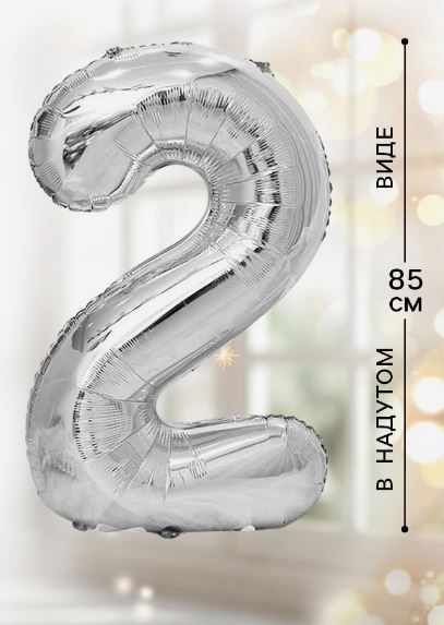Шар фольгированный Цифра 2 85см цвет серебро 1/20/500 оптом и в розницу в Санкт-Петербурге, цены в каталоге с доставкой