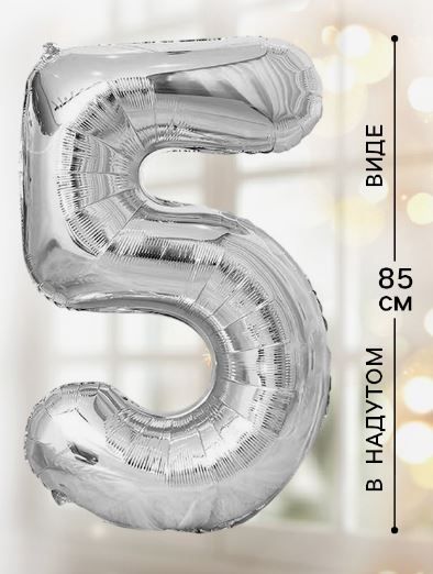 Шар фольгированный Цифра 5 85см цвет серебро 1/20/500 оптом и в розницу в Санкт-Петербурге, цены в каталоге с доставкой
