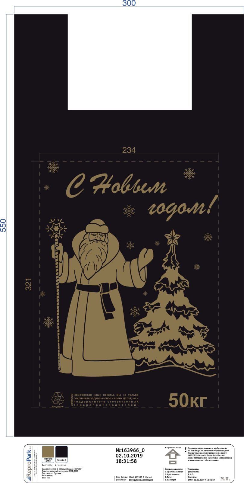 НГ Майка (30+15)х55- 30 мкм черная Дед мороз МП 100/1000 купить оптом и в розницу в Санкт-Петербурге с доставкой недорого оптом и в розницу