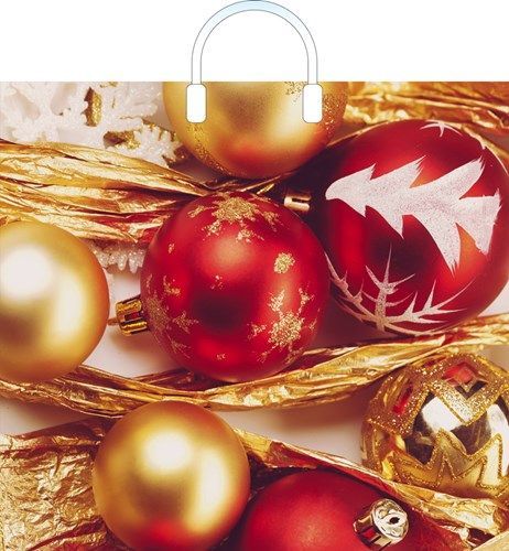 НГ Пакет с пластмассовыми ручками (38х34)-90 Игрушки с мишурой 10/150