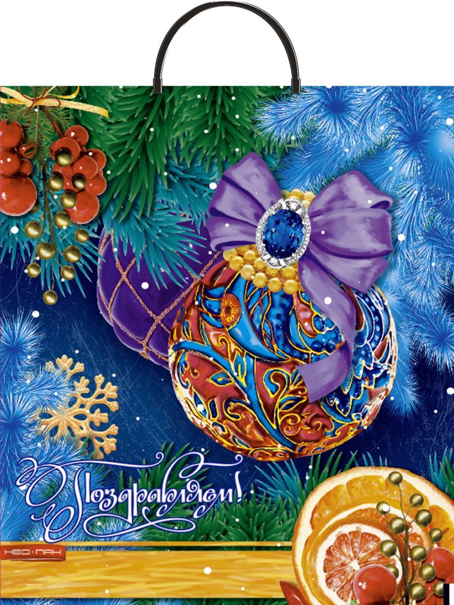 НГ Пакет с пластмассовыми ручками (38х44)-90 Шар с бантом Нео-Пак 5/100 купить оптом и в розницу в Санкт-Петербурге с доставкой недорого оптом и в розницу