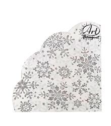 НГ Салфетки 3-сл d 32 см  Rondo Серебряные снежинки на белом (12) 1/15