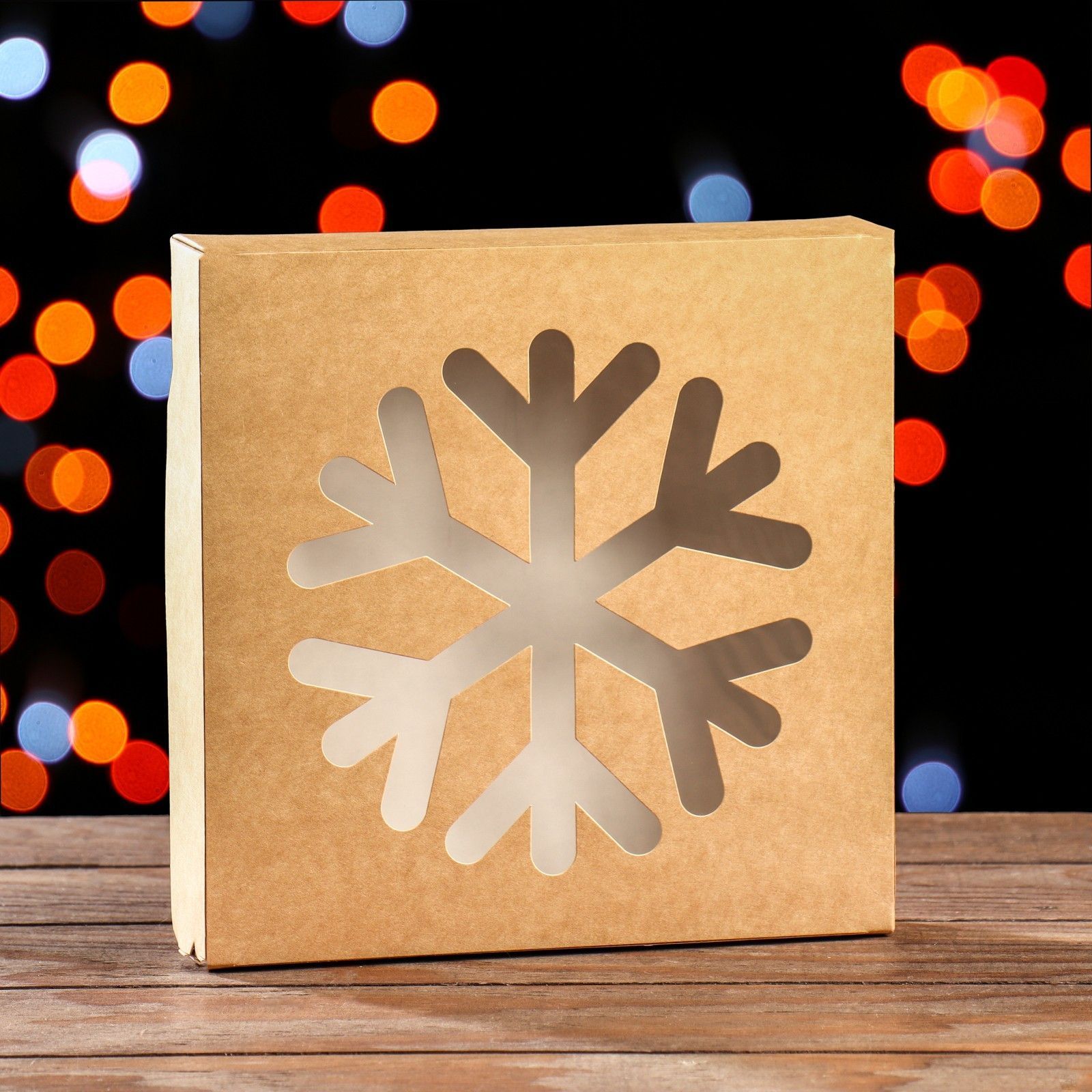 НГ Подарочная коробка 20х20х4 складная Снежинки 1/20
