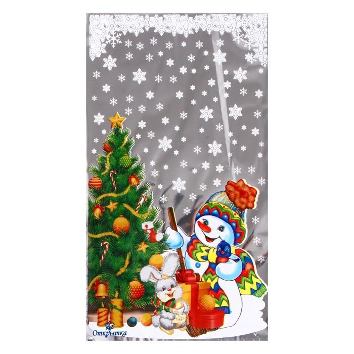 НГ Пакет подарочный (20х35) полипропилен мет+рис Открытка 100/1000 купить оптом и в розницу в Санкт-Петербурге с доставкой недорого оптом и в розницу