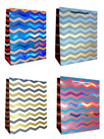НГ Пакет подарочный бумажный (26х32х12) люкс Цветной зигзаг 1/12