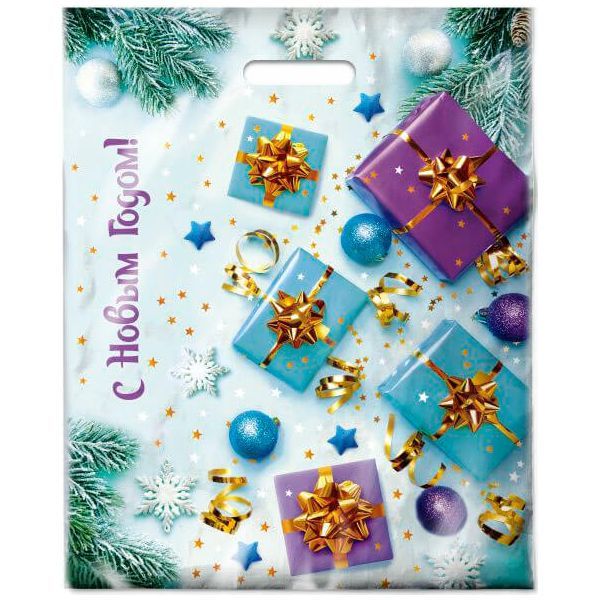 НГ Пакет с вырубной ручкой (38х47)-60 Подарки 50/500 купить оптом и в розницу в Санкт-Петербурге с доставкой недорого оптом и в розницу